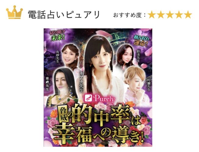 業界屈指の厳しい採用率で本物の占い師しか在籍することができない『電話占いピュアリ』。