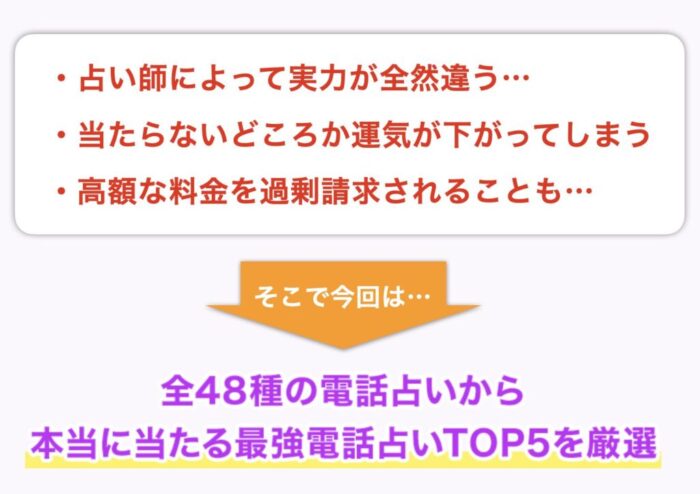 ですが、適当に電話占いを選んでしまうと、当たらないどころか運気が下がったり、高額な料金を過剰請求されることも少なくありません。