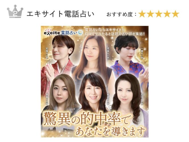 本物の実力者しかいないエキサイト電話占いでトップクラスの実力ですから、一度占ってもらう価値はありますよ!